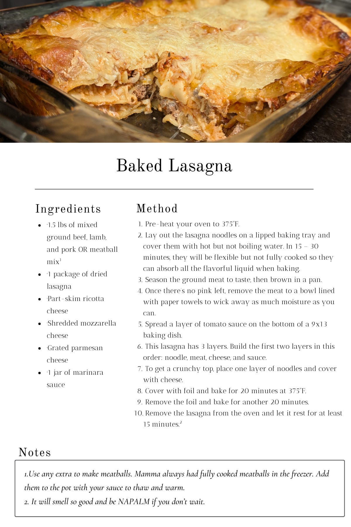 In college, I made lasagna for the jiujitsu club holiday potluck. The next year, I was planning to make something else. Until Archie, our coach, discovered my plan and lovingly threatened that if I didn’t make lasagna, he wouldn’t show up. And if you’ve never had a large Scottish martial arts expert shout about your lasagna, are you really living?